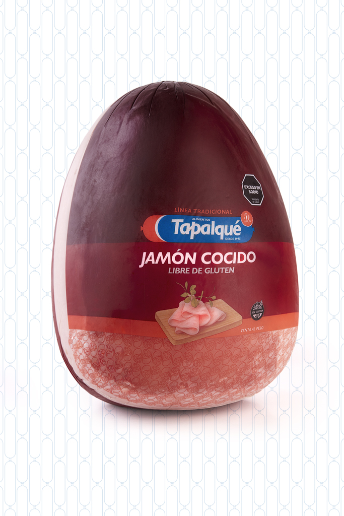 Jamón Cocido elaborado a base de carne de cerdo cuidadosamente seleccionada y sin agregado de féculas.